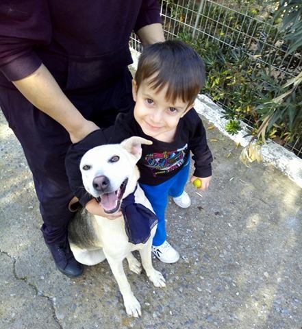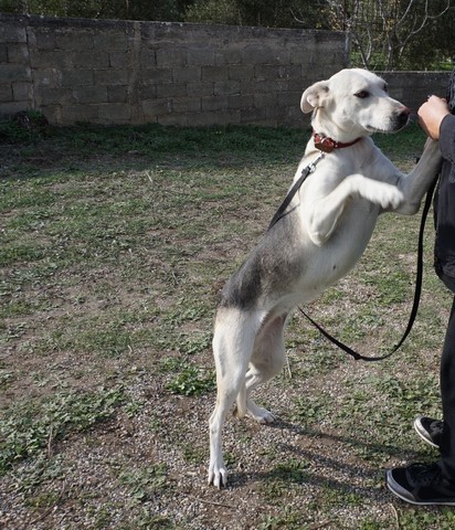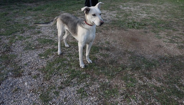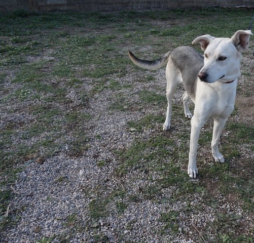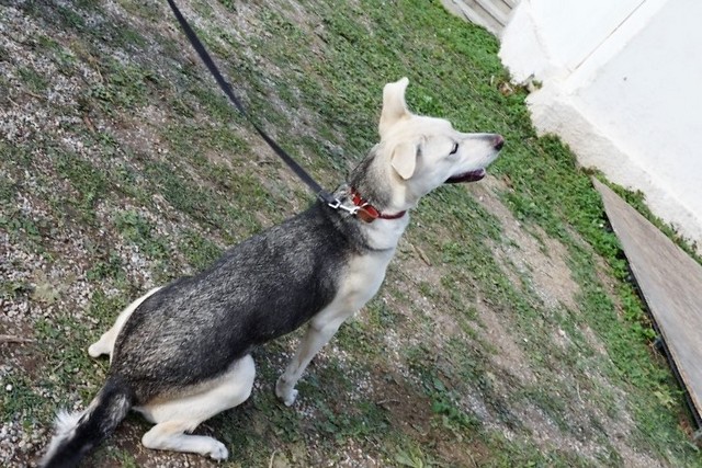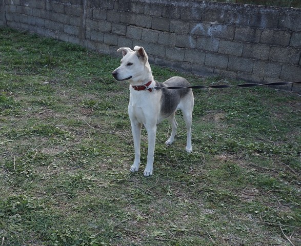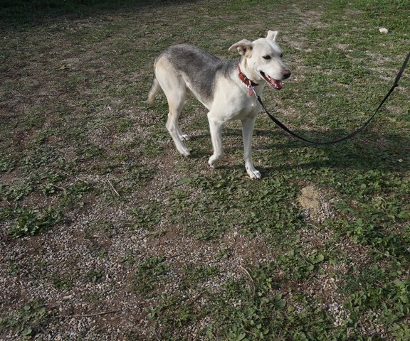Marina was found as a puppy running around in a village. She is a haskey-hunding dog mix. She is very good with children and other dogs.