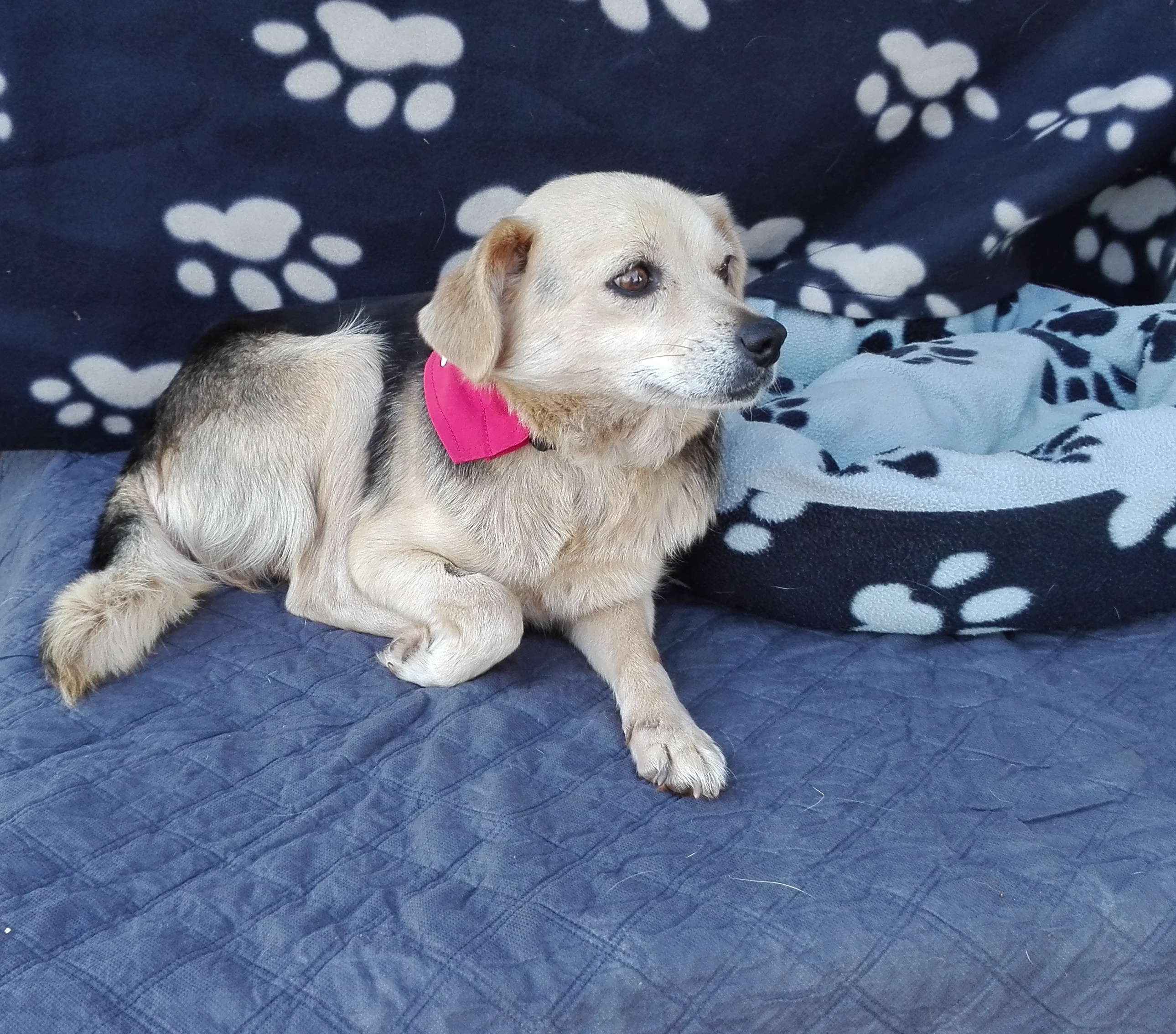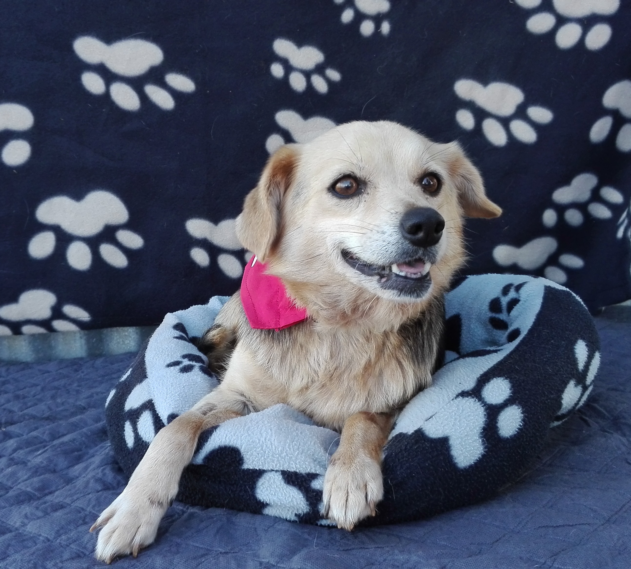 Rosa was found on the street. She is friendly and social, loves human hugs and she is good with the other dogs and cats.